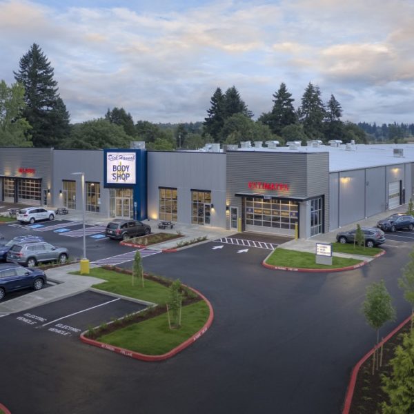 Dick Hannah Collision Center, in Vancouver, is a new, 75,000 SF pre-engineered metal building for a state-of-the-art facility featuring two large lounges and an enclosed vehicle write-up area. Modern technology throughout the building includes over 75 workstations, four double-sized spray booths, a High Roof paint booth, 45 adjustable-height lifts with compressed air and strategically placed trench drains at the vehicle drop off area and car wash booth.